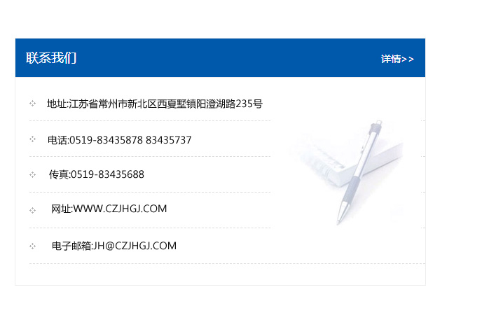 地址:常州市新北區(qū)友邦商務大廈1幢16、17層  電話:0519-85101652  傳真:0519-85112595  郵編:213022  網(wǎng)址:www.cz-jiayue_cn.kmcits0029.com  郵箱:xiajifengaa@163.com